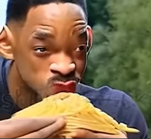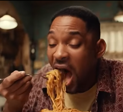 (Credit: https://commons.wikimedia.org/wiki/File:Will_Smith_Eating_Spaghetti_Original.webm [Bottom picture], https://commons.wikimedia.org/wiki/File:Will_Smith_eating_spaghetti_Google_Veo_3.webm [Top picture])