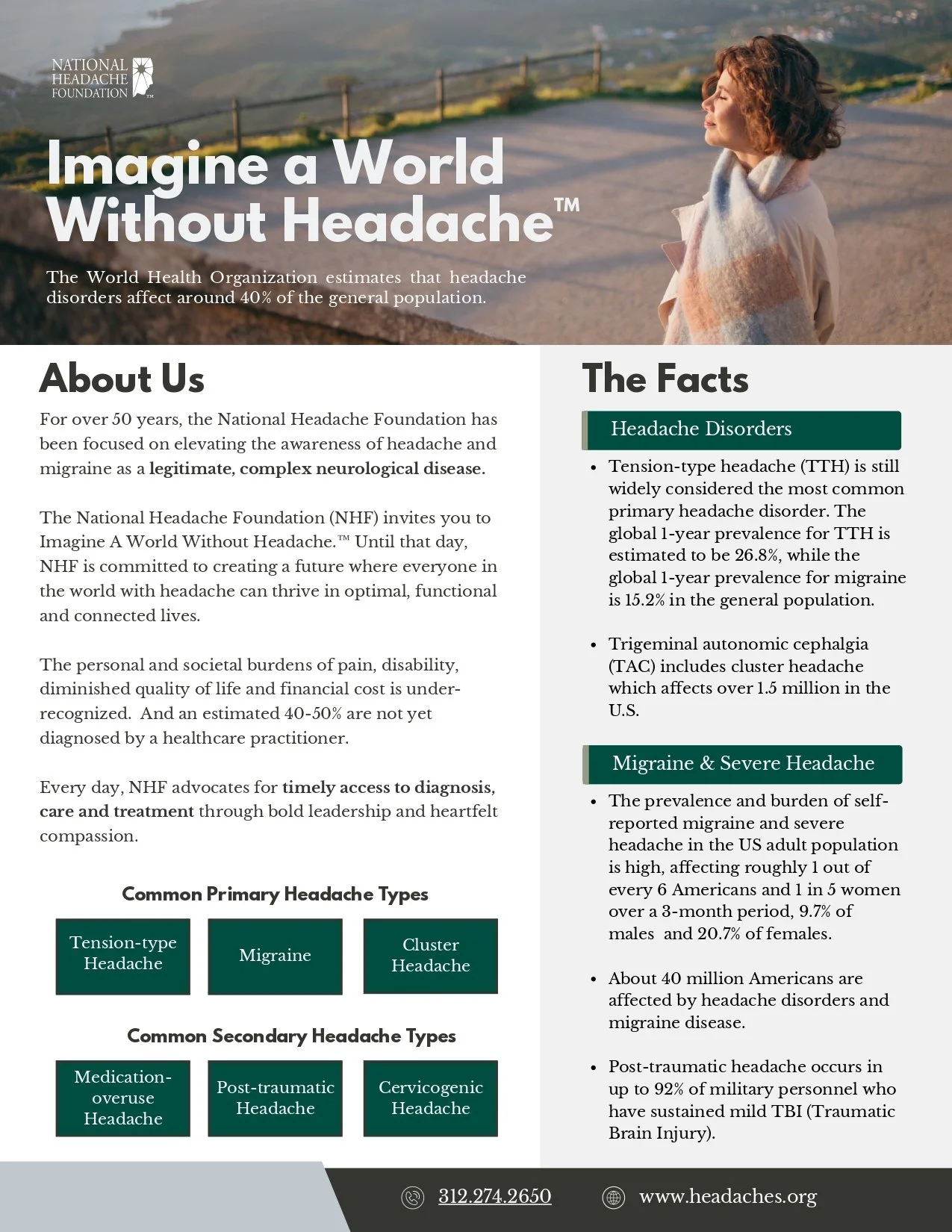 For over 50 years, their mission at the National Headache Foundation has been to further awareness of headache and migraine as legitimate neurological diseases. With aid from advanced technology and clinical innovation, there are more care and treatment options than ever before.